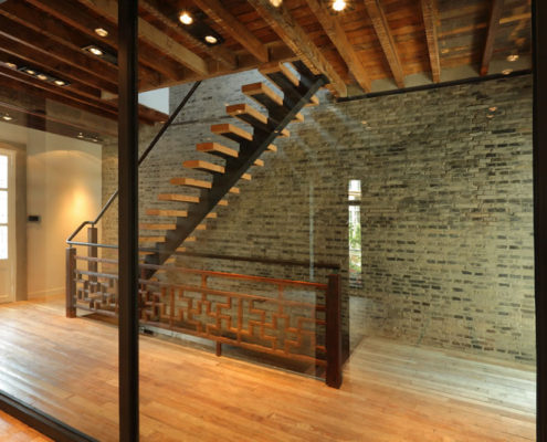 Originally a 1920s Shanghai Shikumen property, this 500 SQM conversion will transform a residential street-front property into a modern retail and office space in downtown Shanghai. After its completion, an office space with 280 SQM of fitted-out office space with open ceilings that expose the historical beams of the space will materialize, with large open-brick walls along with modern elements such as central-heating and air and optic fiber wiring for fast internet and data-sharing. The office conversion will fit one company, or five depending how the space is shared. In addition, 180 SQM of space with large window bays and open ceilings will be available for restaurants and/or retail.