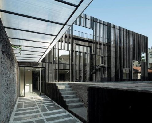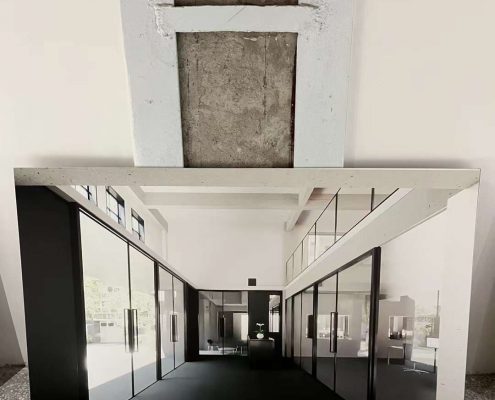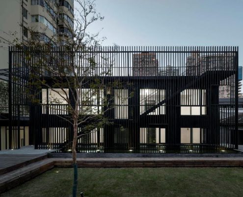 Build took over this property in early 2020, drained the pool and cleared out all of the remaining dirt inside. We worked with architect PRA to reimagine the swimming pool to be a creative office space with its own private garden in the city center. At the same time, we have added a viewing pond and kept some original elements of the pool, such as the lifeguard seat, pool handrails, and the pool tiles & lockers–which has become a part of our sunken rest space within the property—to preserve its former identity of a public pool. The office conversion will fit one company, ideally to take advantage of the 500 sqm garden space as well as the understated 240 sqm two-floor office with a glass-top rooftop on the first floor for natural skylight.